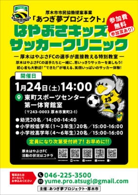 1/24(土)14:00より、はやぶさキッズサッカークリニックが開催されます!